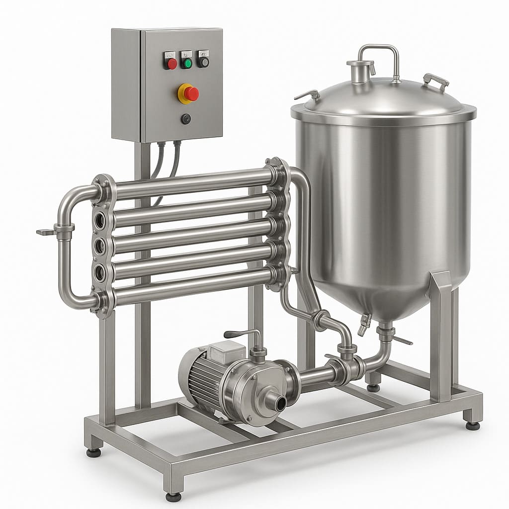 Пищевое технологическое оборудование оформляется по декларации ТР ТС 010/2011. Сертификат может потребоваться, если оборудование содержит элементы, подпадающие под обязательную сертификацию (насосы, электробезопасность, взрывозащита). Для поверхностных материалов, контактирующих с продуктом, может потребоваться подтверждение безопасности контакта.